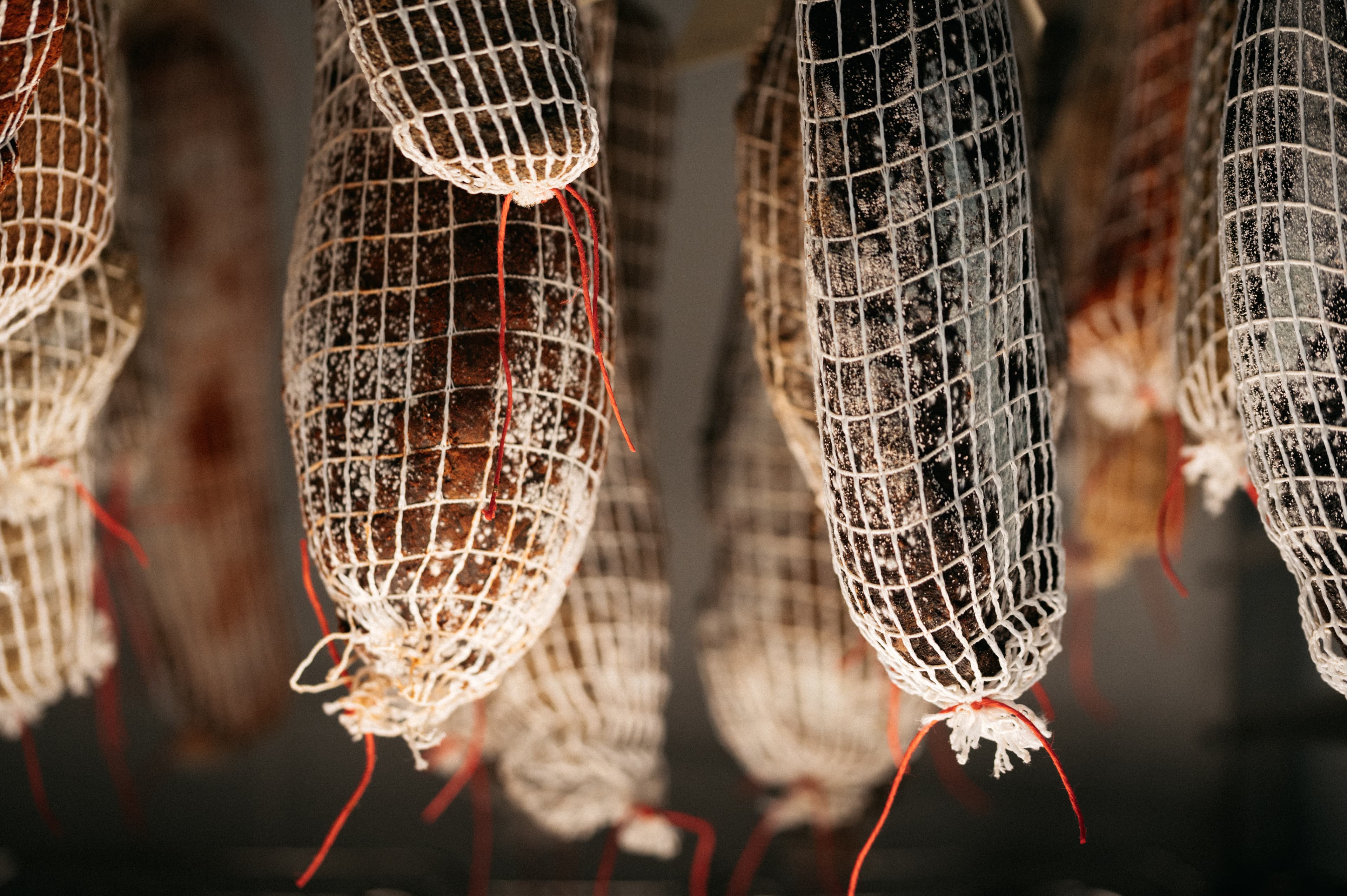 Nous n'utilisons jamais de nitrites, de colorants ou de conservateurs. Nos produits sont naturels : de la viande locale, du sel de Camargue et des épices bio. Nous aimons découvrir de nouvelles saveurs en utilisant le vieux vin rancio des Corbières ou l'Armagnac du Gers ou encore l'Ail des Ours.