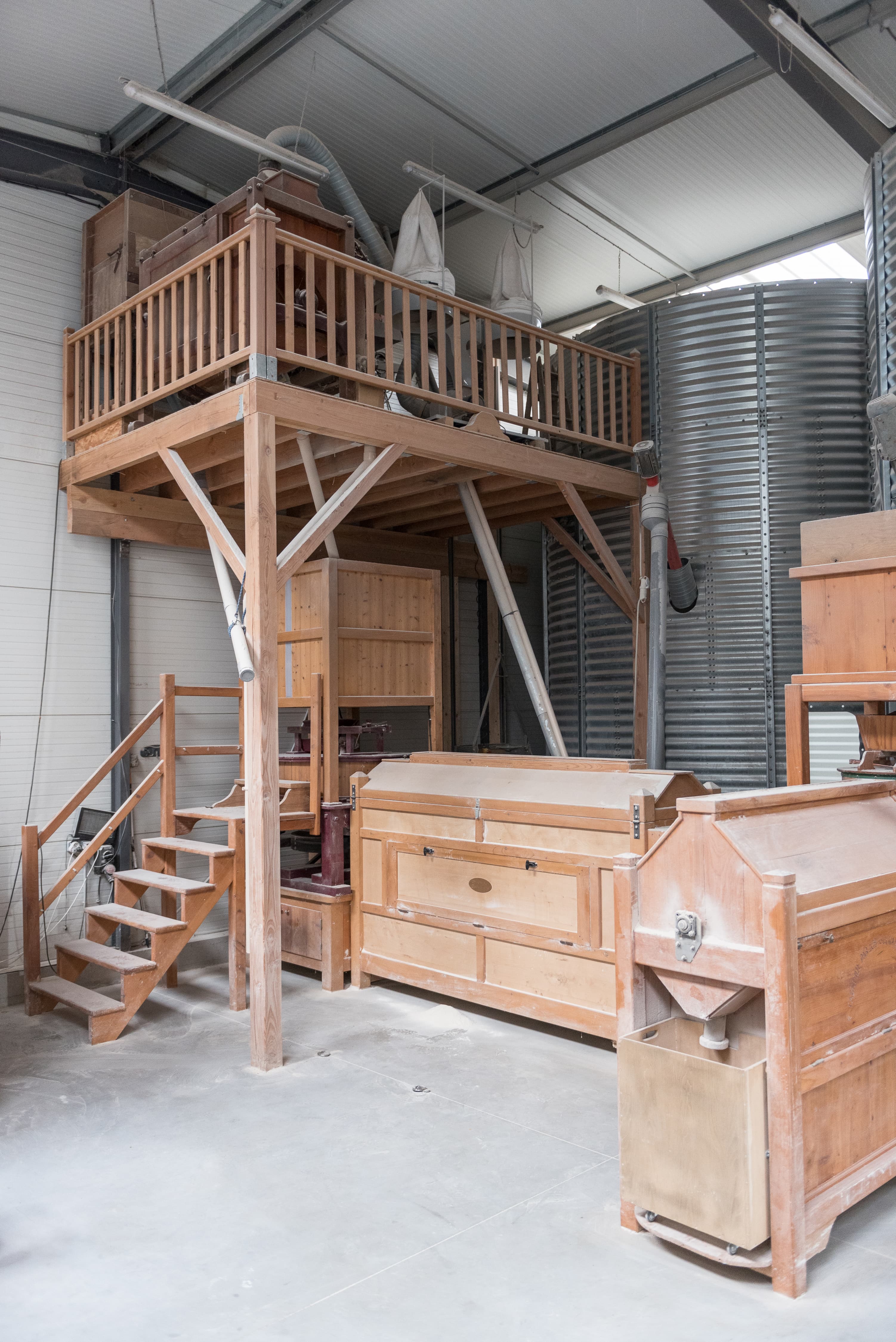 Le blé récolté à chaque mois d’août est stocké et séché dans des silos exempts de tout insecticide, permettant ainsi une conservation naturelle. Ensuite, il est trié grâce à un trieur mécanique « Pernollet » de 1890, entièrement rénové par ce jeune passionné.